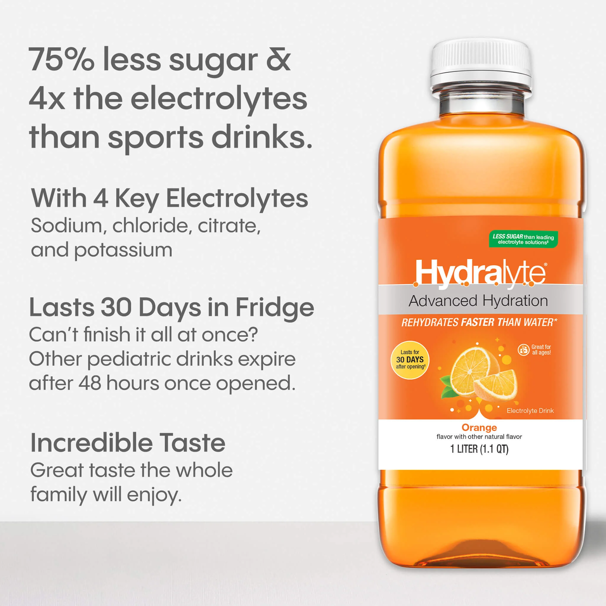 Our signature LyteRH® formula delivers a precise blend of electrolytes and just enough sugar to accelerate water absorption - not just replenish electrolytes like other blends.